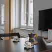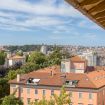 L'appartamento si trova al sesto piano con ascensore e offre una magnifica vista sui tetti di Trieste.