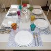 In fondo al corridoio si trova la zona giorno, con il soffitto affrescato, un comodo divano e il mobile TV, sulla parete di fronte la cucina, completamente attrezzata, con tutto l'occorrente per preparare pranzi e cene in autonomia e il tavolo da pranzo, che può ospitare comodamente quattro persone.