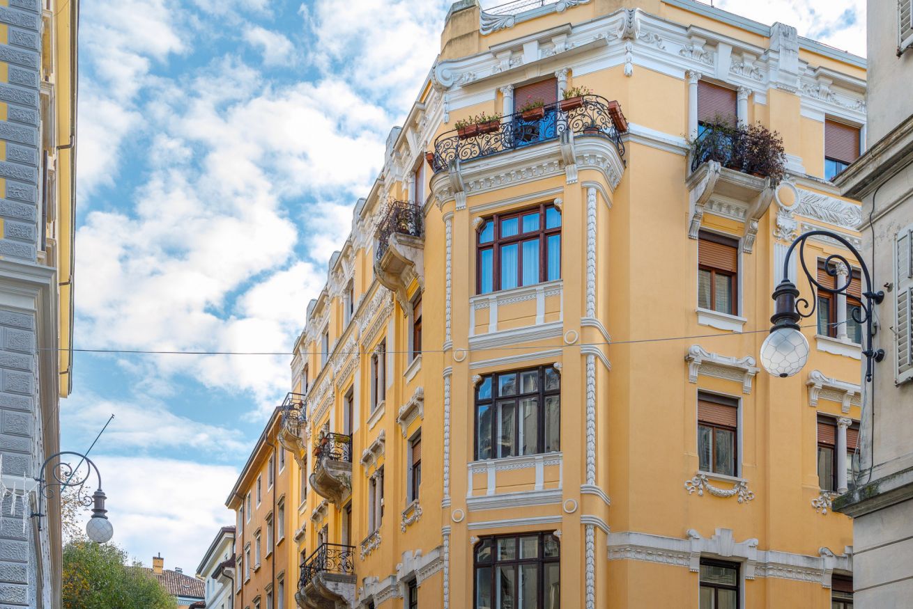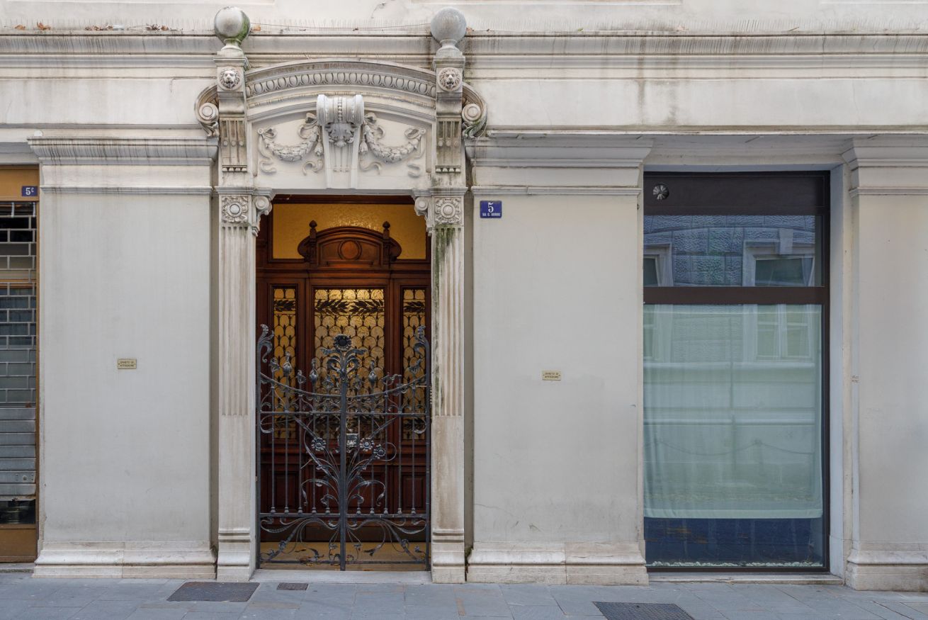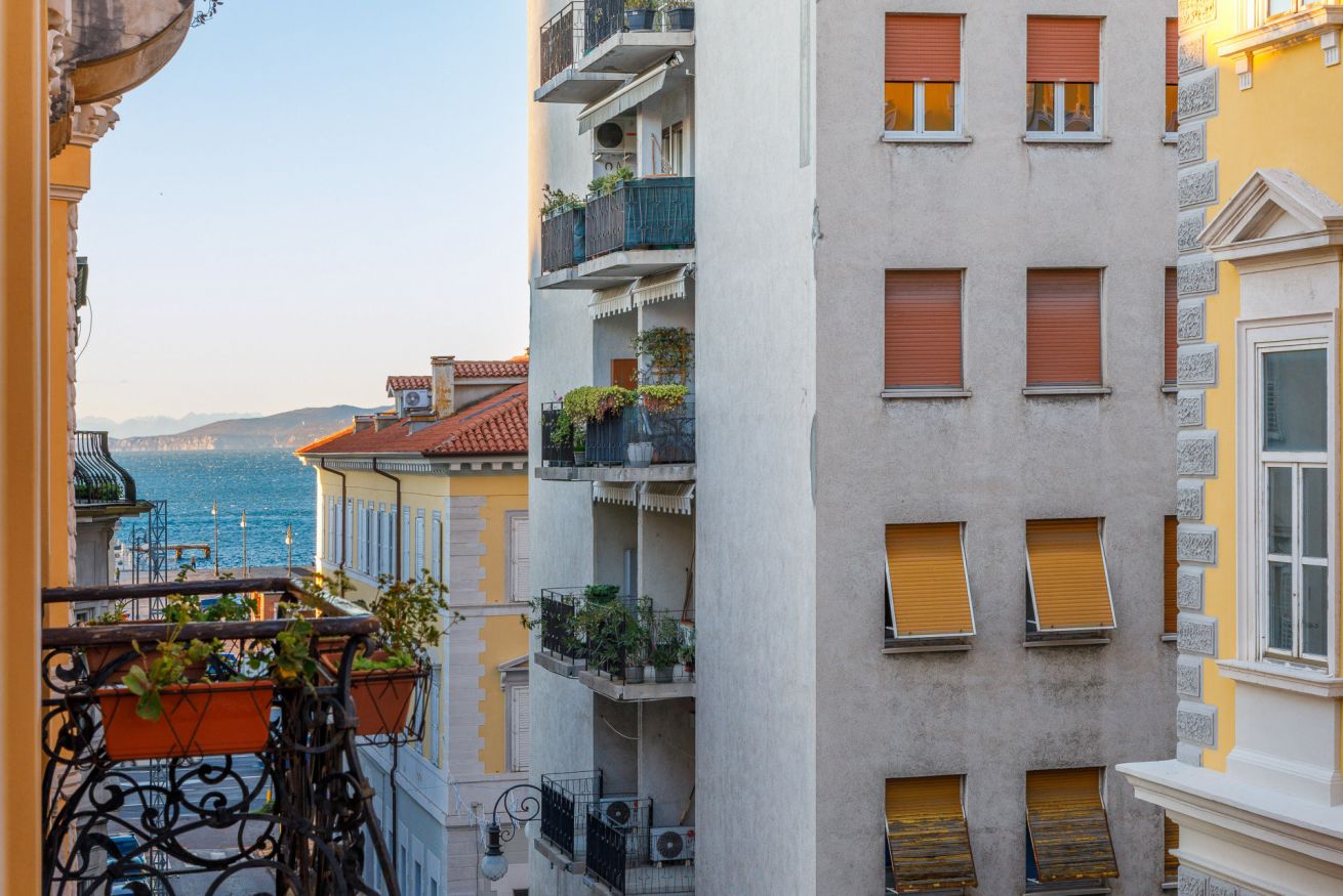 L’appartamento si trova all’interno di Casa Basevi, uno degli esempi più interessanti e precoci di architettura liberty a Trieste. Realizzato nel 1892 su progetto dell’ingegnere Eugenio Geiringer, l’edificio è vincolato dalle Belle Arti ed è spesso segnalato sulle guide turistiche per il suo ricco apparato decorativo, i balconi con ringhiere in ferro battuto e l’elegante portale d’ingresso. Un piccolo frammento della Trieste cosmopolita e raffinata di fine Ottocento.