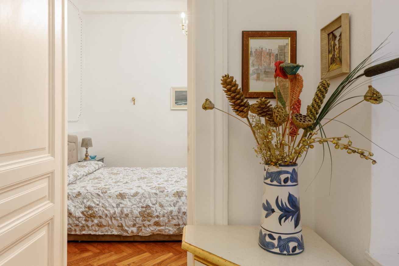 Luminoso, silenzioso e di ampia metratura, l’appartamento conserva intatto il fascino delle eleganti dimore italiane di una volta: pavimenti in parquet originale, soffitti alti, arredi d’epoca selezionati con cura e un’atmosfera calda e accogliente. Una casa ideale per chi desidera vivere Trieste lentamente, a piedi, immerso nella sua storia e nella sua eleganza senza tempo, senza rinunciare alla comodità.
