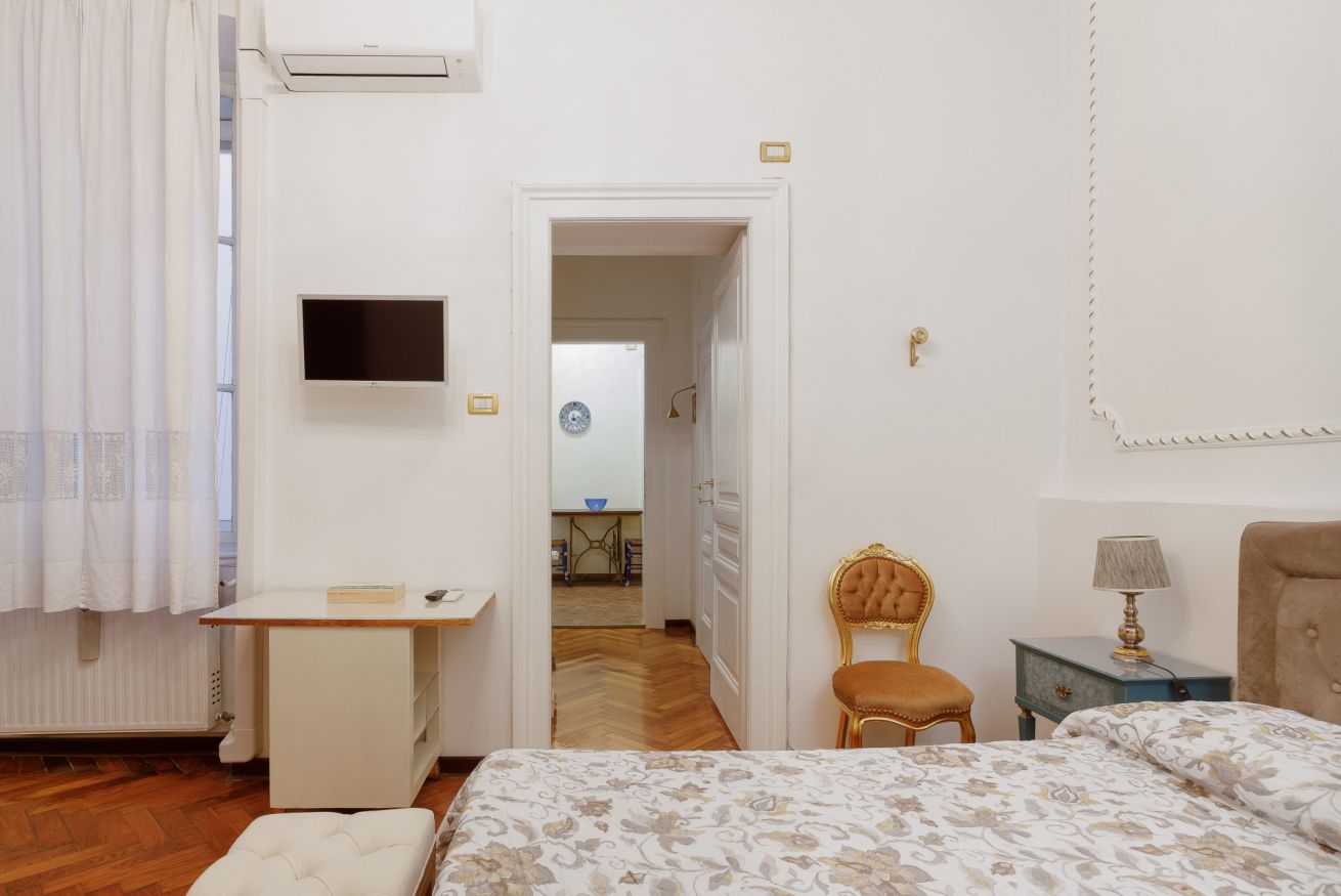 La camera matrimoniale è spaziosa, silenziosa e particolarmente adatta a garantire un riposo tranquillo. Non affacciandosi direttamente sull’esterno, risulta molto quieta, ideale per chi cerca un sonno profondo anche nel cuore della città.