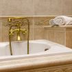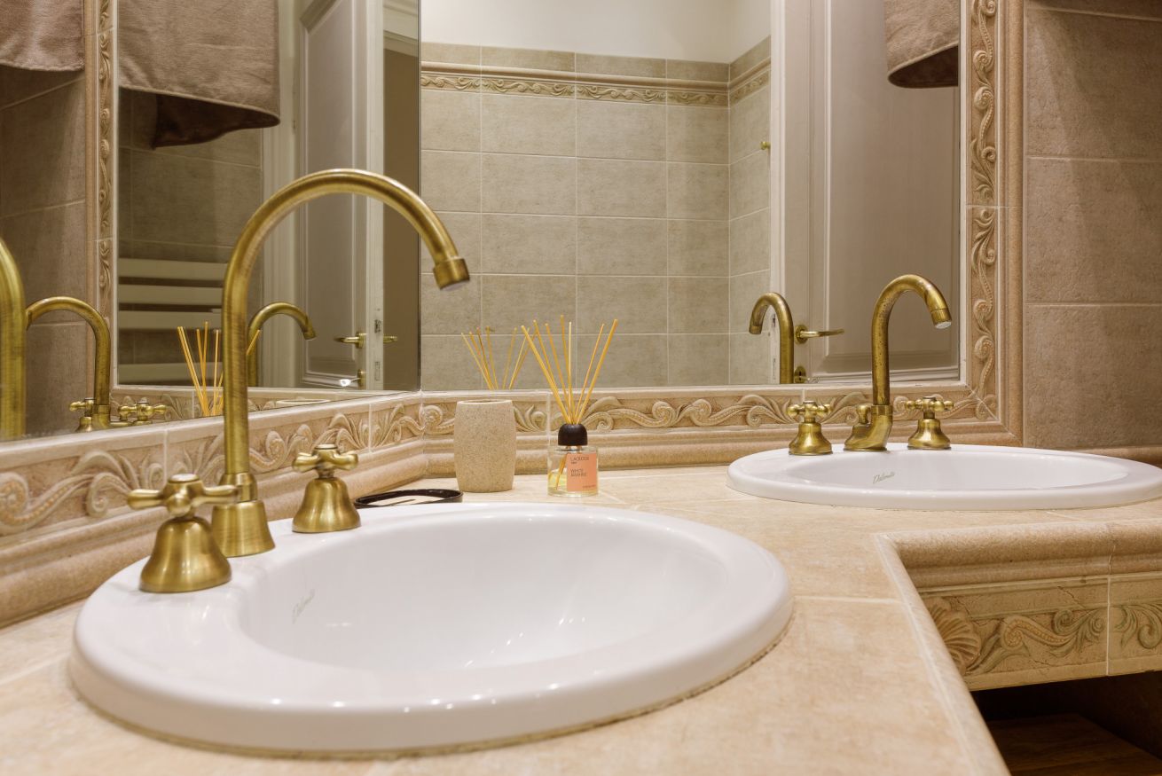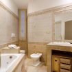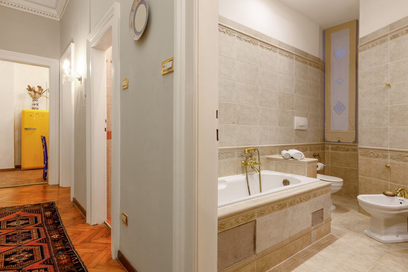 Il bagno principale è ampio ed elegante, dotato di doppio lavabo e vasca idromassaggio, perfetta per concedersi un momento di relax dopo una giornata in città.