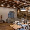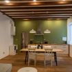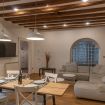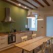 Di fronte alla cucina si trova un caratteristico tavolo da pranzo e la zona living, con il comodo divano e la tv.