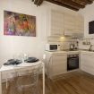 Nel primo monolocale, affacciato su Via San Marco, si trovano un comodo letto matrimoniale, una cucina attrezzata con forno, microonde, bollitore e tutto il necessario per cucinare, oltre a un tavolo da pranzo per quattro persone.